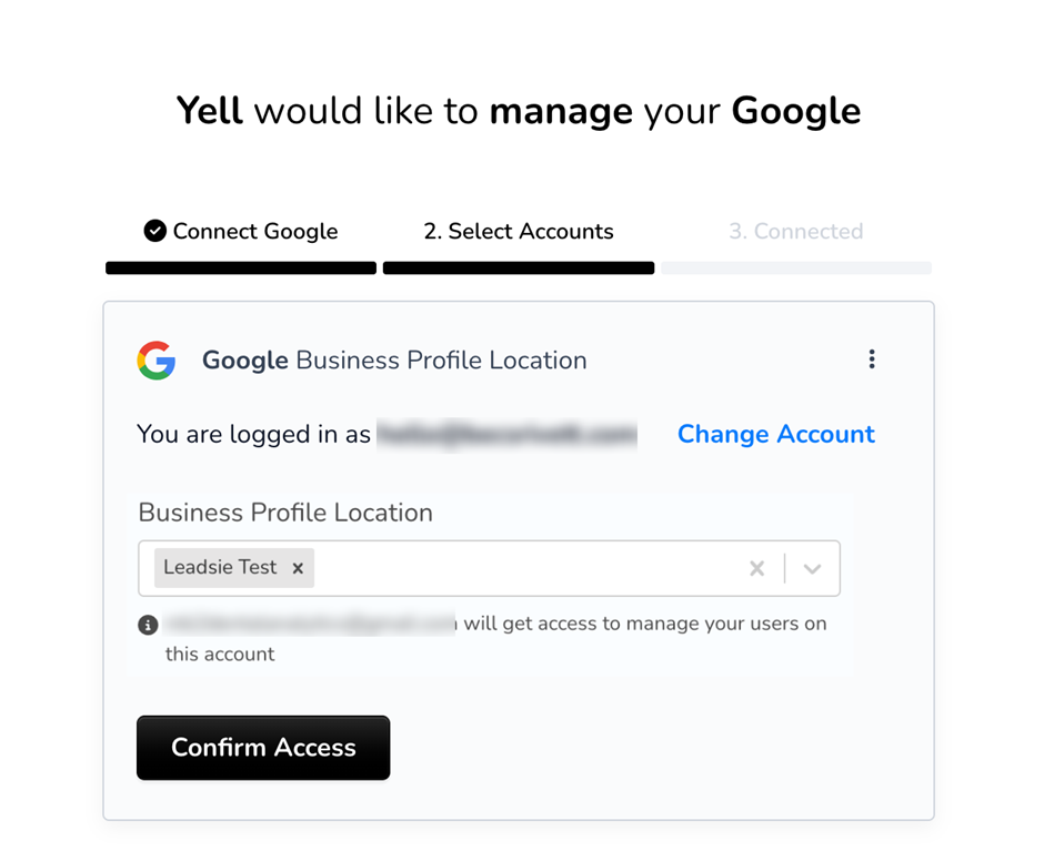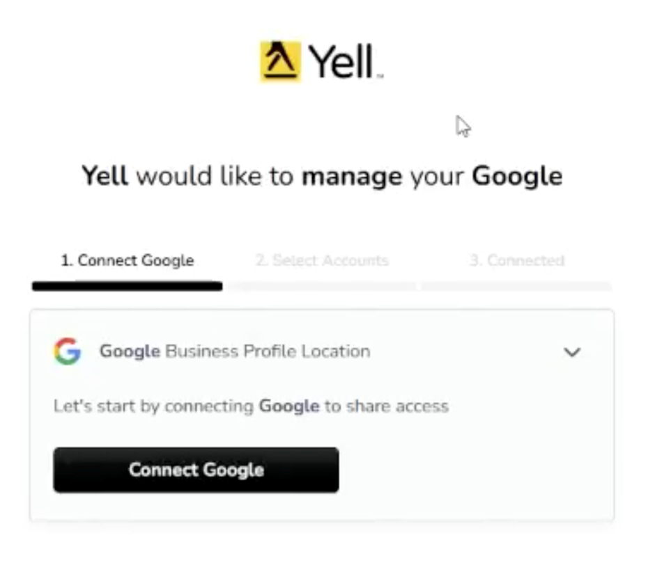 We are trialling a tool called Leadsie to connect your Google Business Profile to Yell for a select group of customers. If you’ve received an email asking you to connect using a link, we’ll ask for access to manage your Google Business Profile.